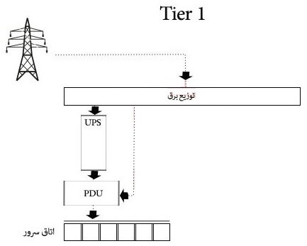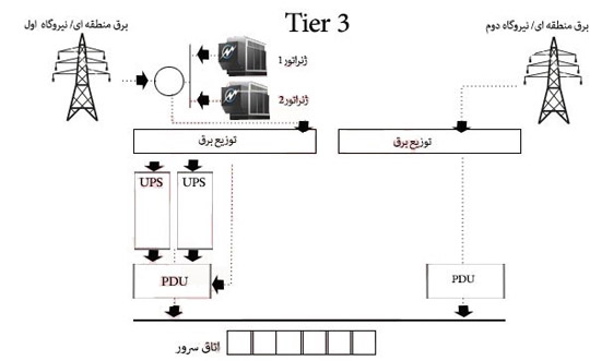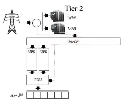 افزونگی : برق اصلی دوم از نیروگاه دوم، ژنراتور دوم و UPS دوم در خط برق اصلی در این سطح خط برق دوم دارای ژنراتور و UPS نیست.